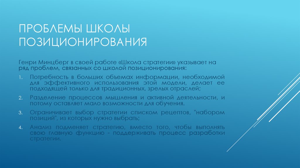 ПРОБЛЕМЫ ШКОЛЫПОЗИЦИОНИРОВАНИЯ