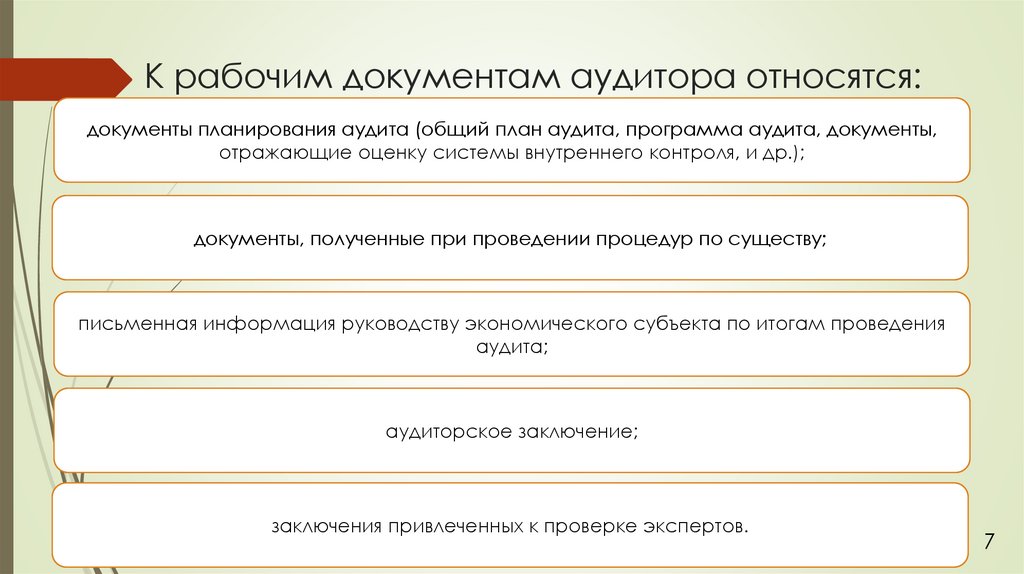 Документирование аудитаэто рабочие документы и материалы, подготавливаемые