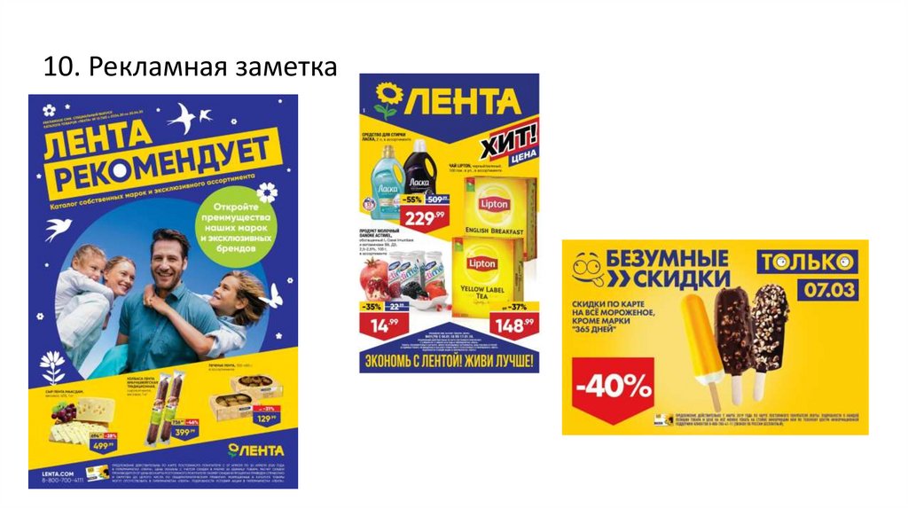 Типология рекламы ООО "ЛЕНТА"1. Общенациональная