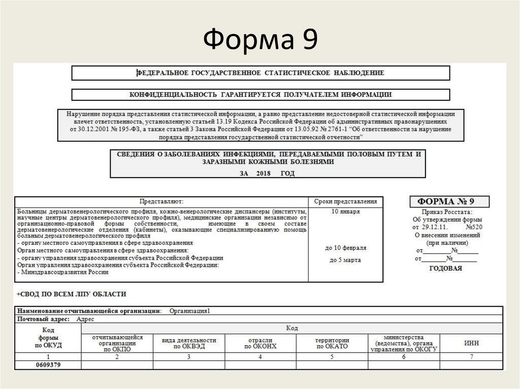 Отчетная документация• Форма №9