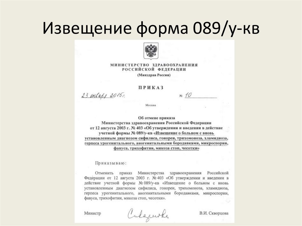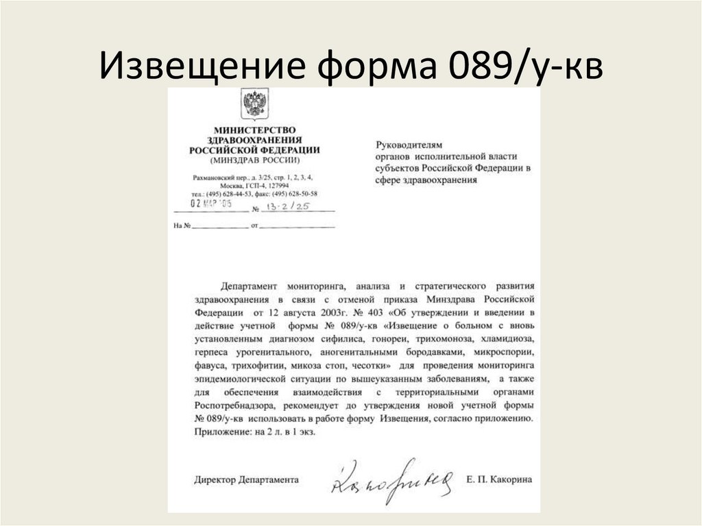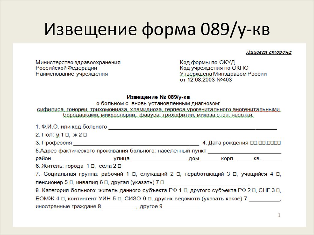 Извещение форма 089/у-кв7.