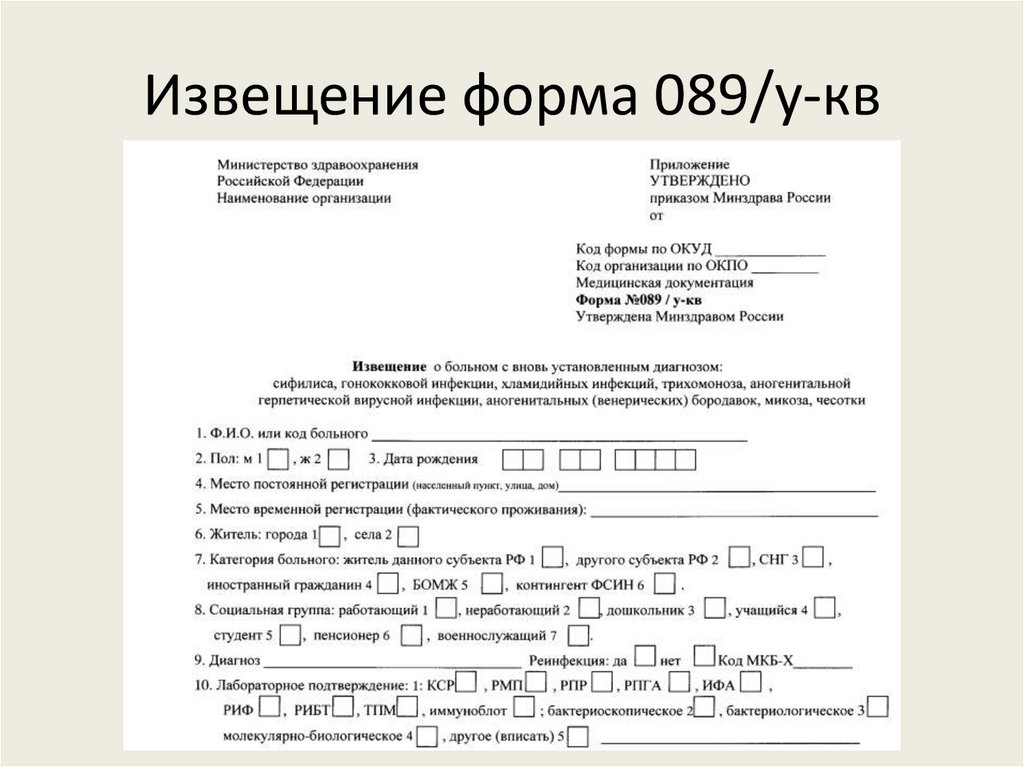Извещение форма 089/у-кв8.