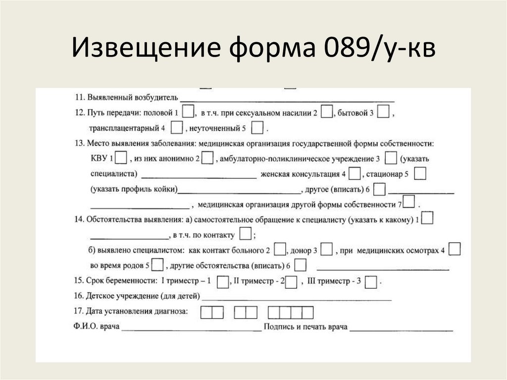 Извещение форма 089/у-кв9.