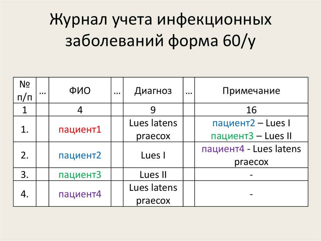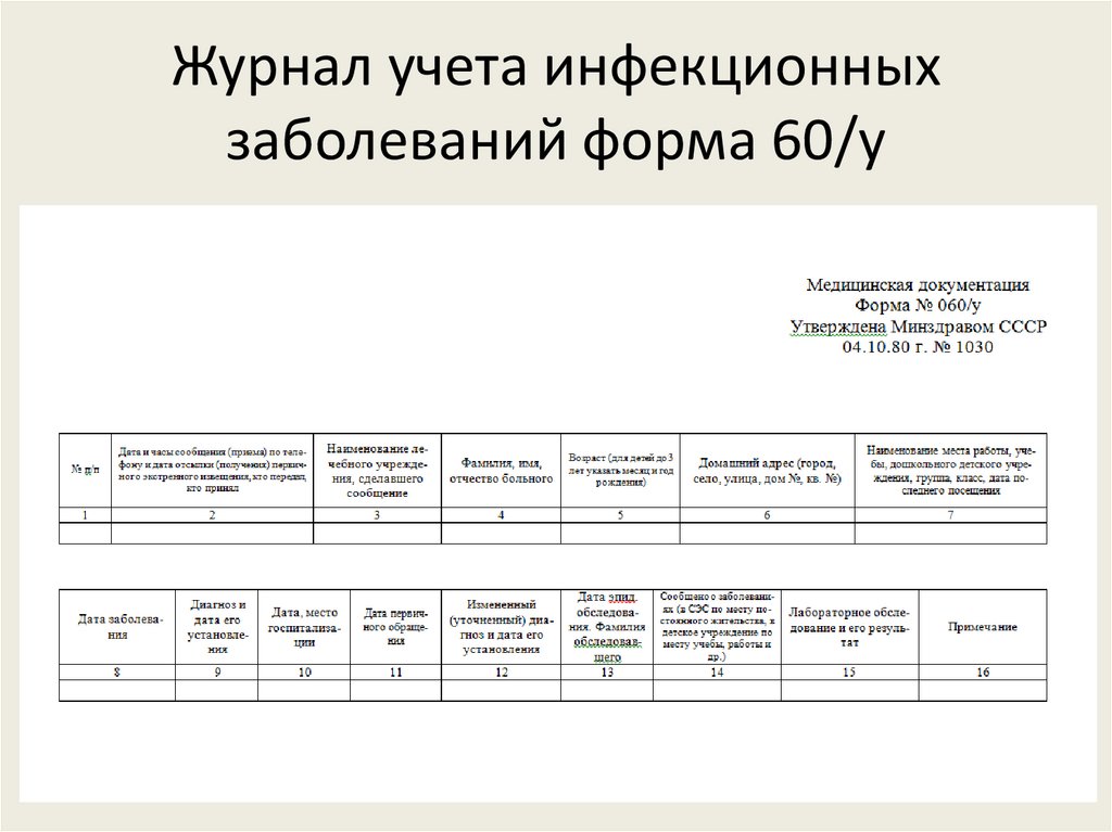 Журнал учета инфекционныхзаболеваний форма 60/у