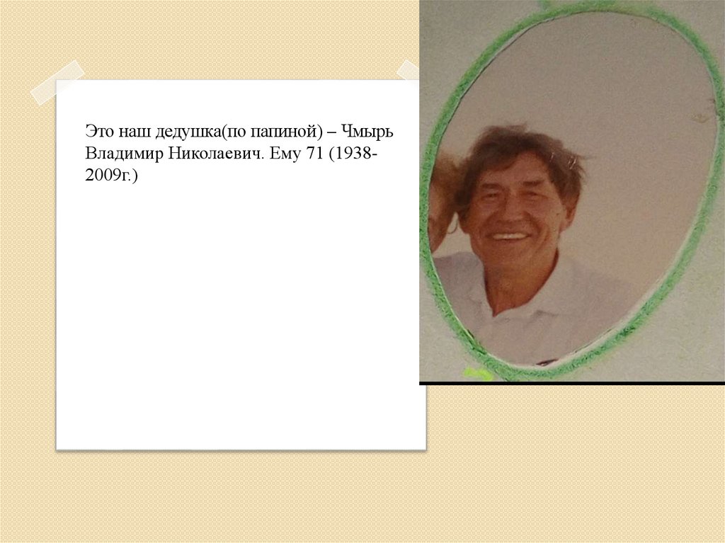 Это наш дедушка(по папиной) – ЧмырьВладимир Николаевич. Ему 71 (19382009г.)