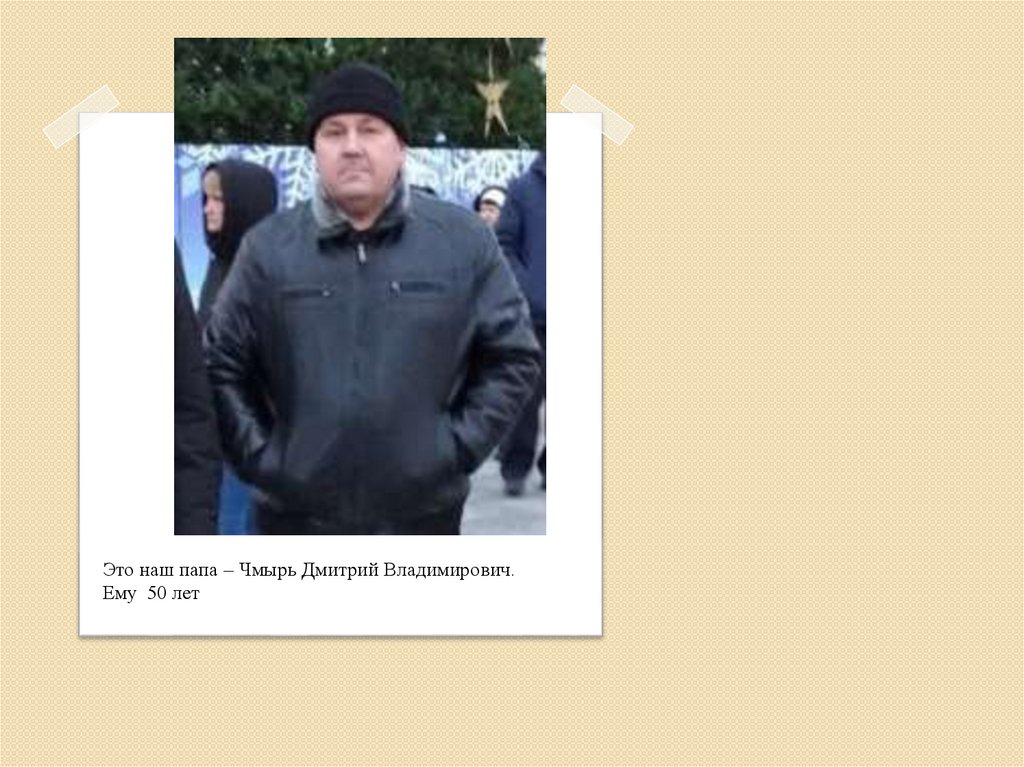 Это наш папа – Чмырь Дмитрий Владимирович.Ему 50 лет