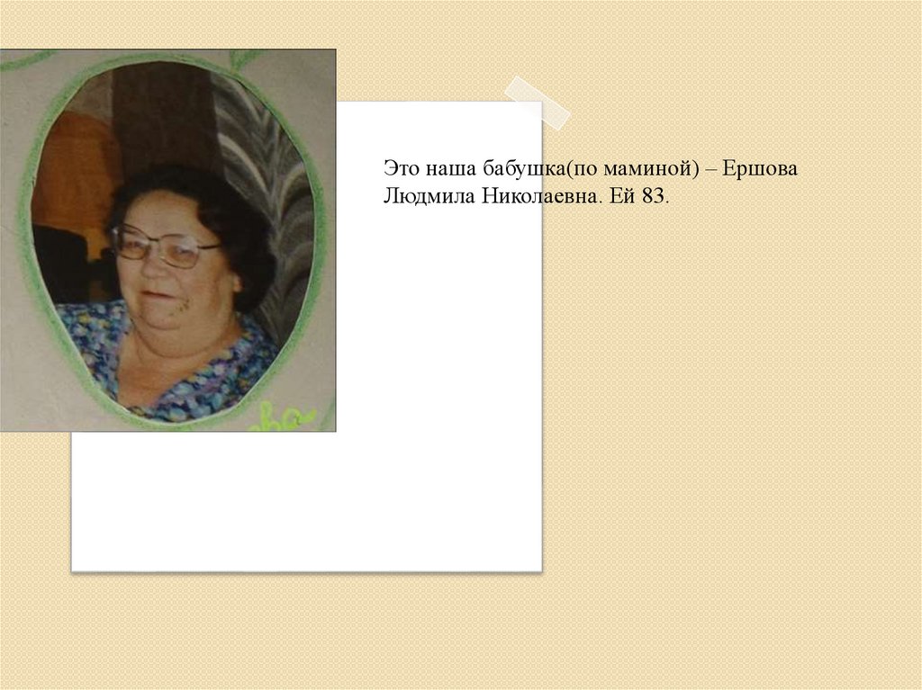 Это наша бабушка(по маминой) – ЕршоваЛюдмила Николаевна. Ей 83.