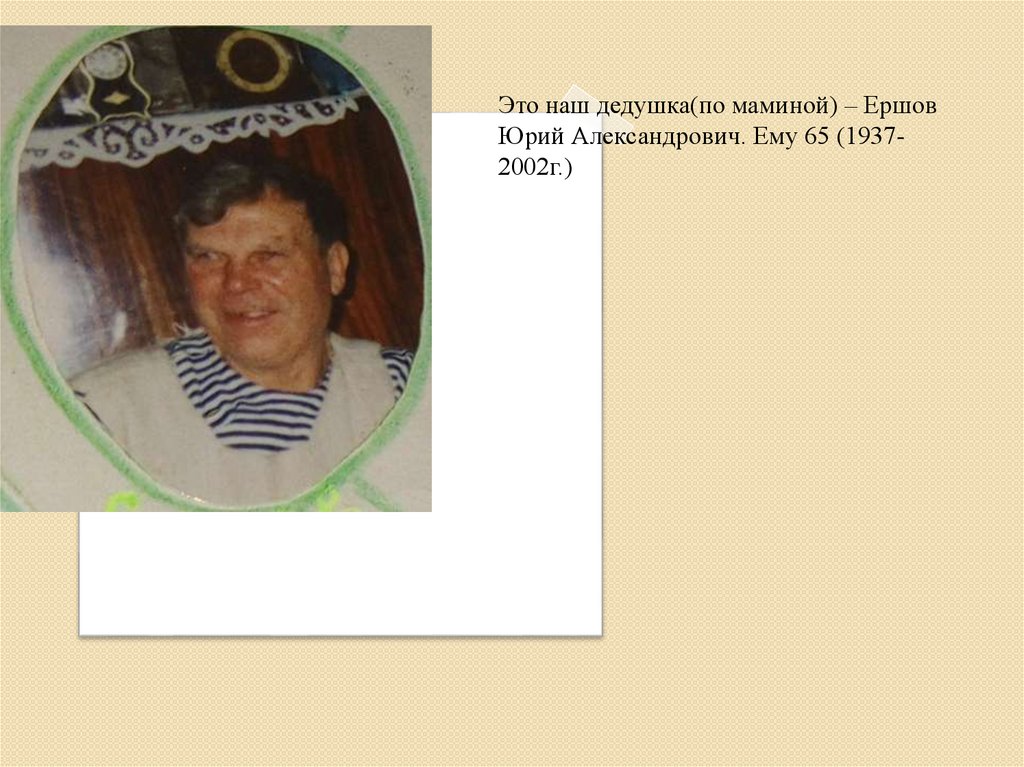Это наш дедушка(по маминой) – ЕршовЮрий Александрович. Ему 65 (19372002г.)
