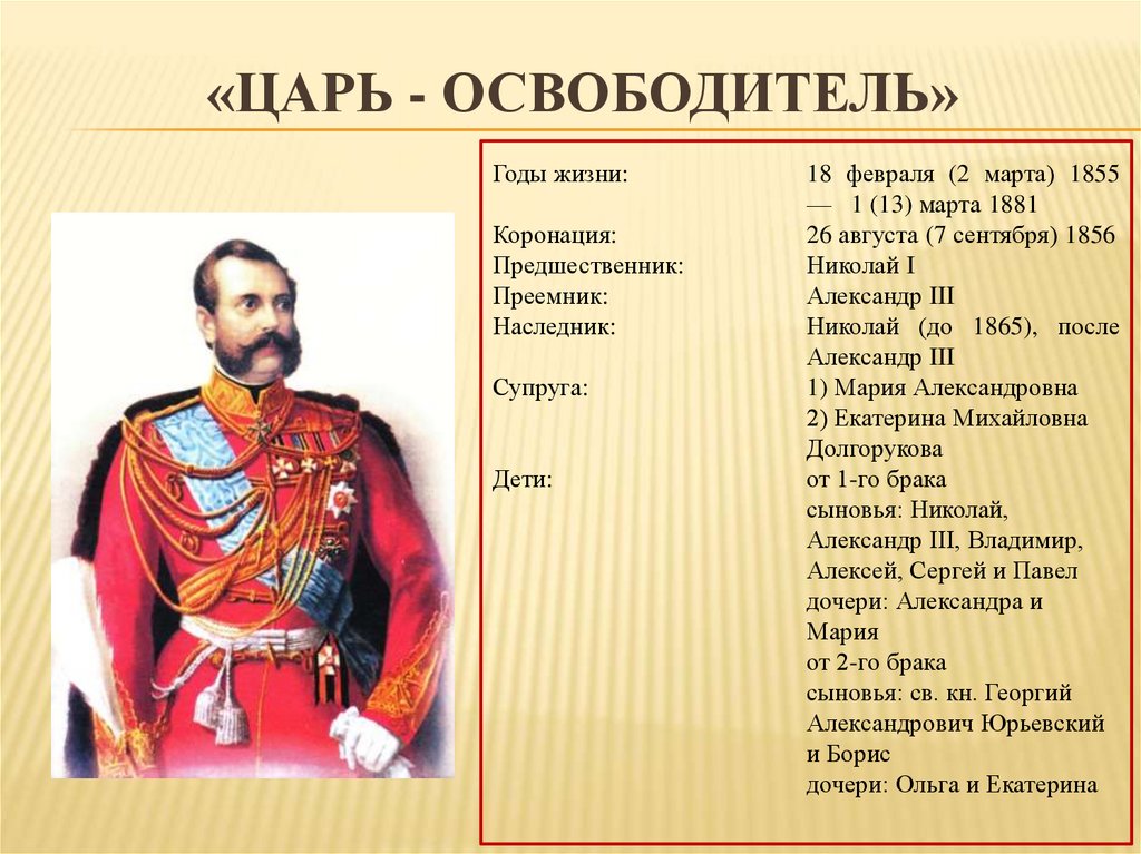 «ЦАРЬ - ОСВОБОДИТЕЛЬ»Годы жизни: