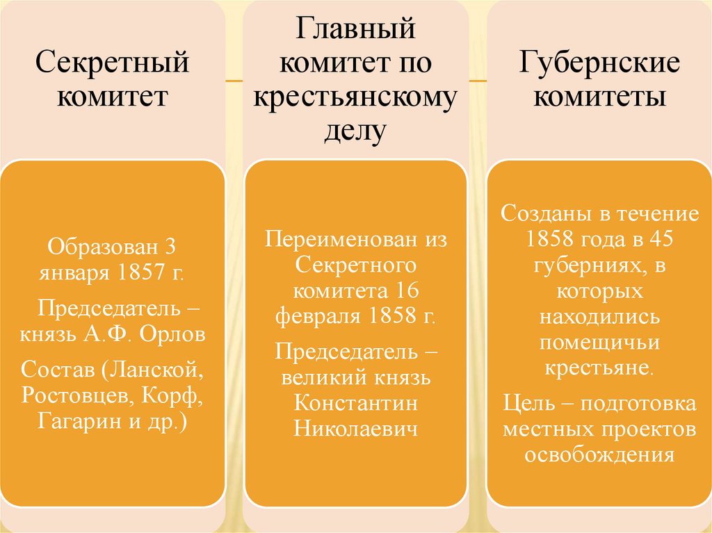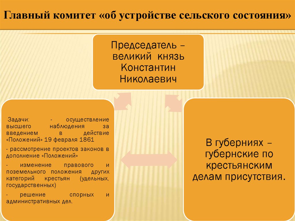 Главный комитет «об устройстве сельского состояния»Председатель –