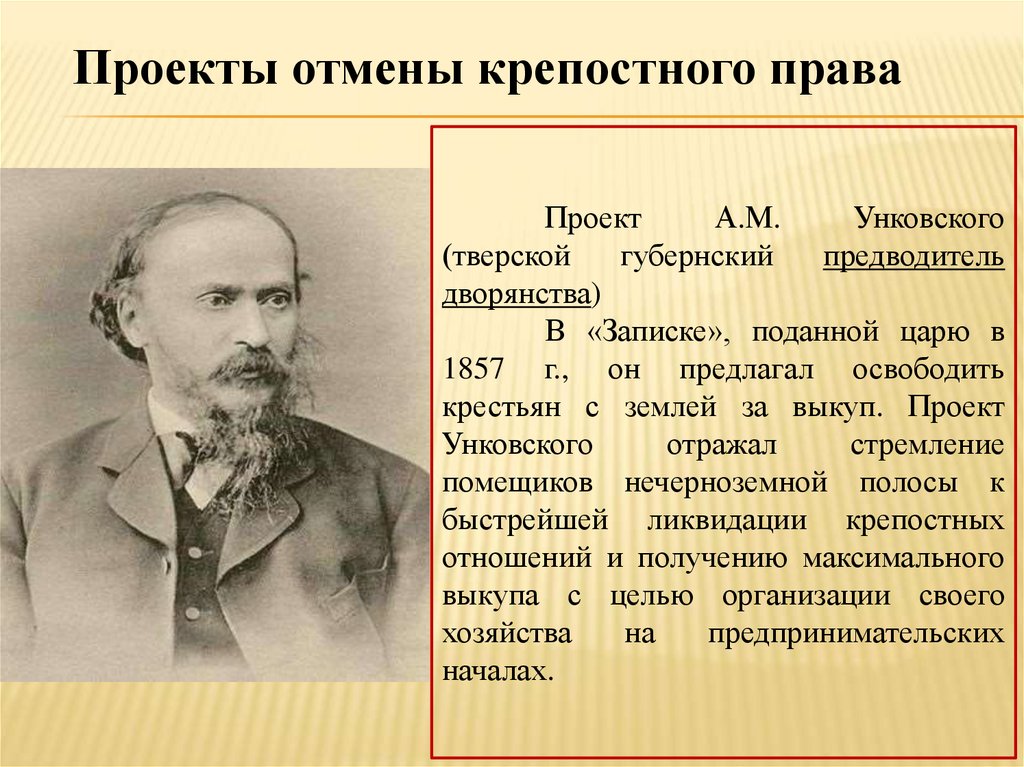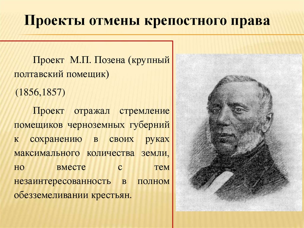 Проекты отмены крепостного праваПроект М.П. Позена (крупный