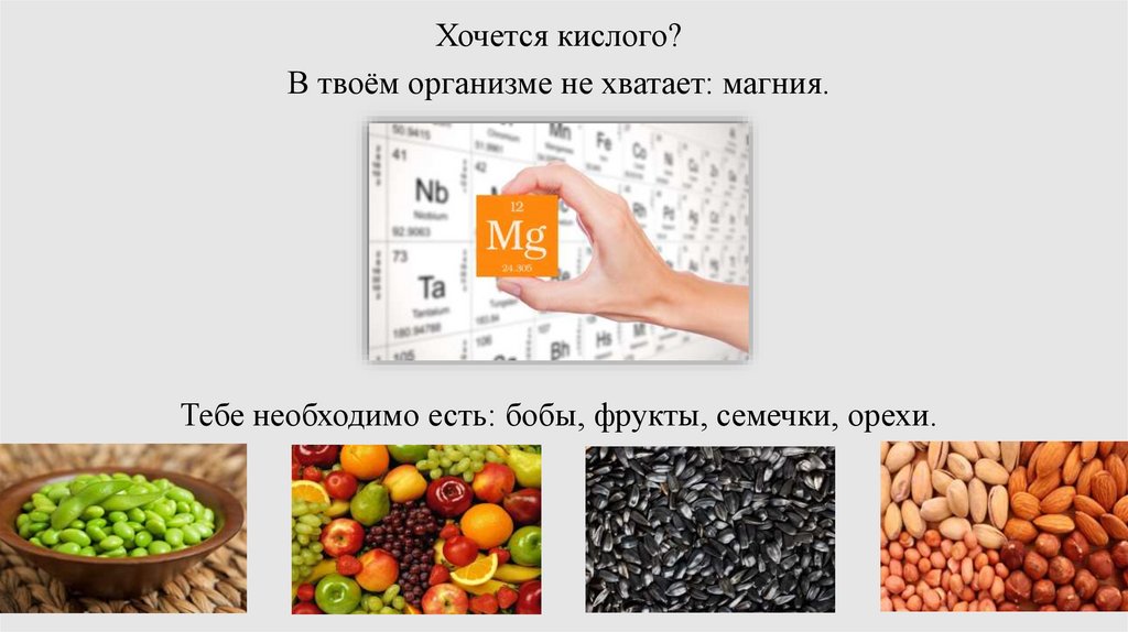 Хочется кислого?В твоём организме не хватает: магния.