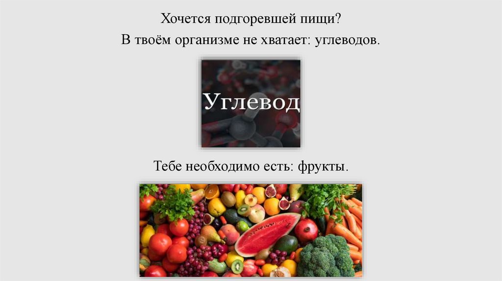 Хочется подгоревшей пищи?В твоём организме не хватает: углеводов.