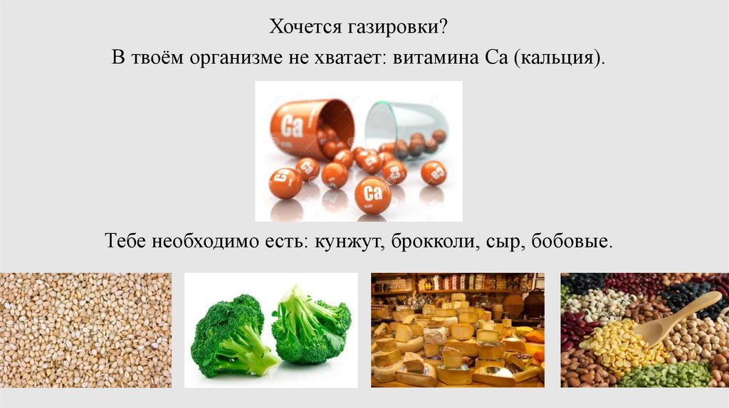 Хочется газировки?В твоём организме не хватает: витамина Са (кальция).
