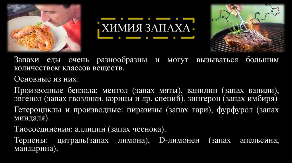 ХИМИЯ ЗАПАХАЗапахи еды очень разнообразны и могут вызываться большим