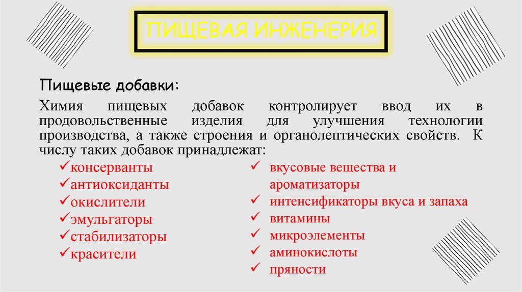 ПИЩЕВАЯ ИНЖЕНЕРИЯПищевые добавки: