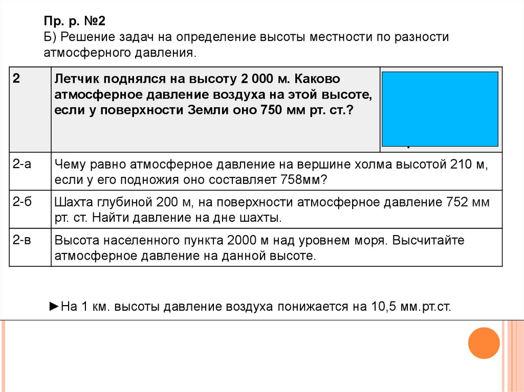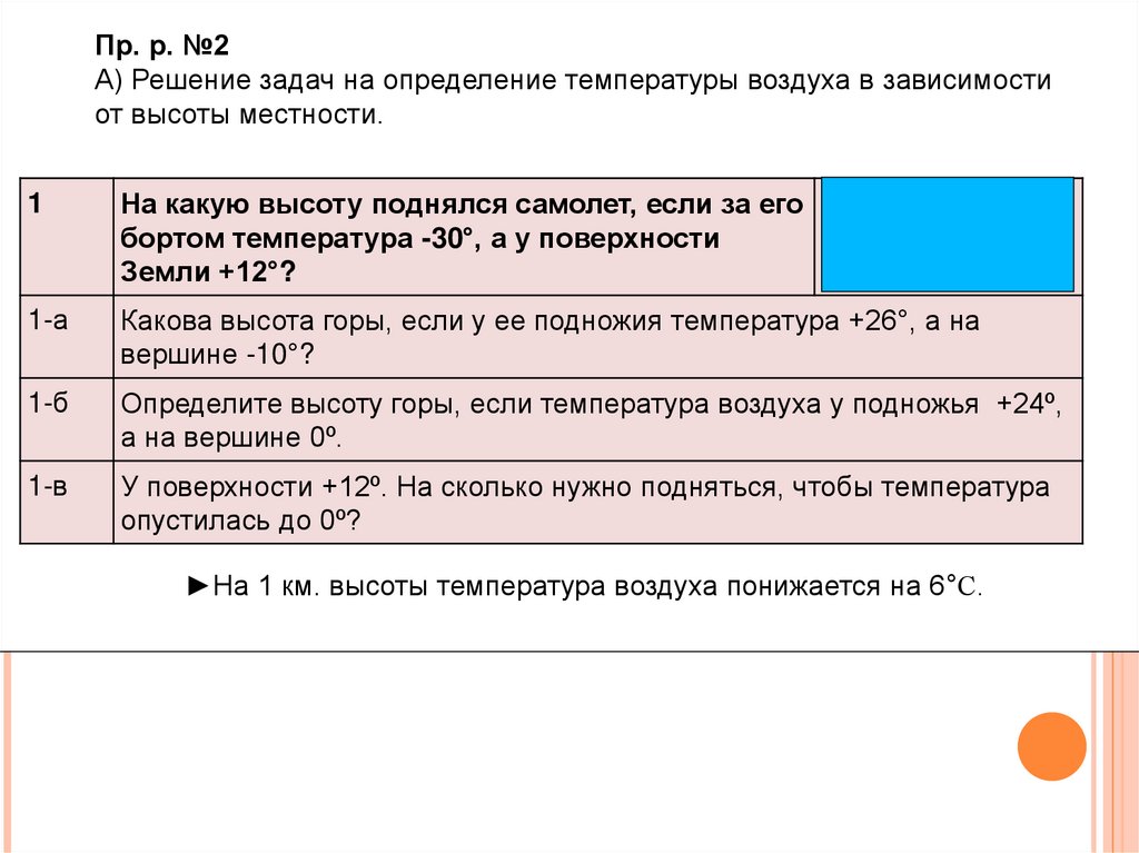 Пр. р. №2А) Решение задач на определение температуры воздуха в зависимости