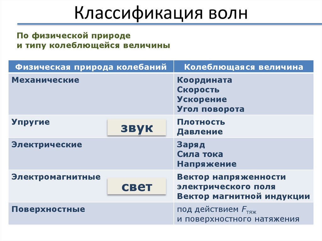 Классификация волнПо физической природе