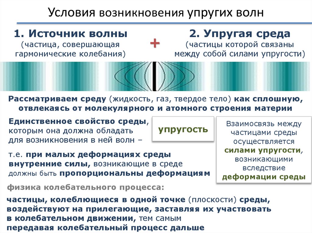 Условия возникновения упругих волн1. Источник волны