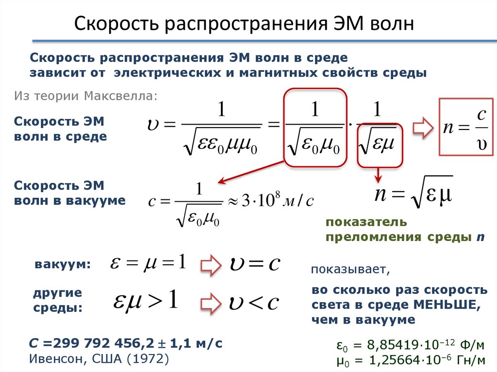 скорость распространения волн одной природы