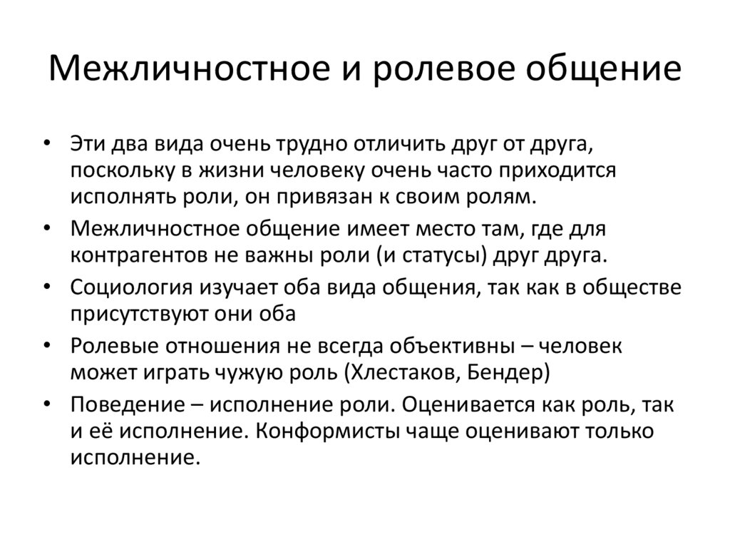 Межличностное и ролевое общение• Эти два вида очень трудно отличить друг от друга,