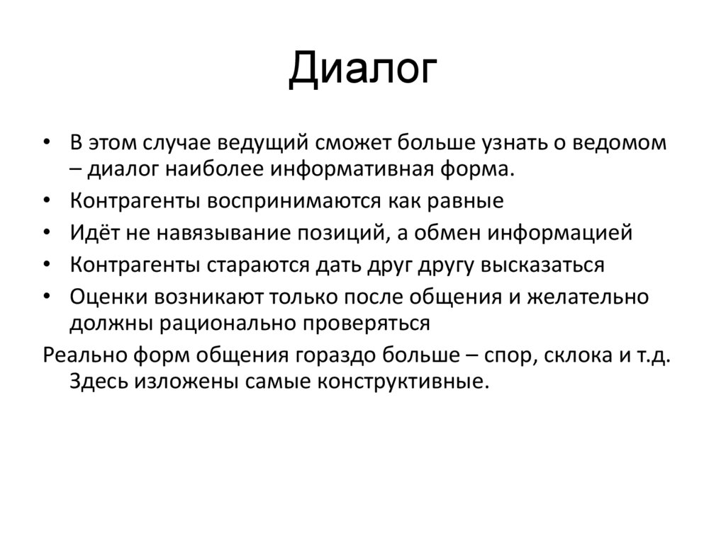 Диалог• В этом случае ведущий сможет больше узнать о ведомом
