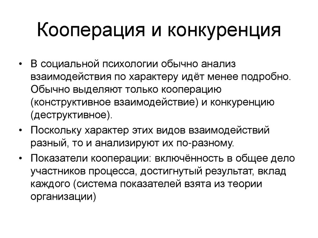 Кооперация и конкуренция• В социальной психологии обычно анализ