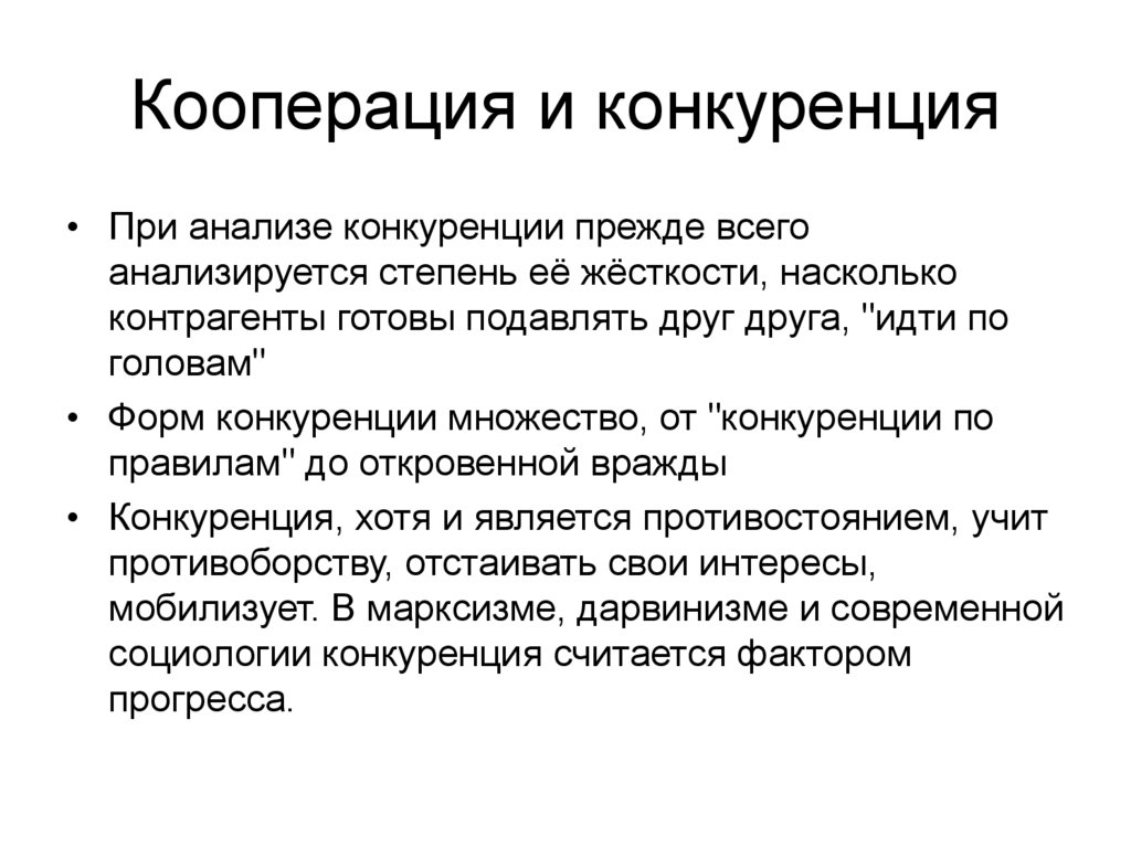 Кооперация и конкуренция• При анализе конкуренции прежде всего