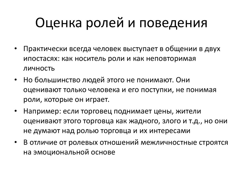 Оценка ролей и поведения• Практически всегда человек выступает в общении в двух