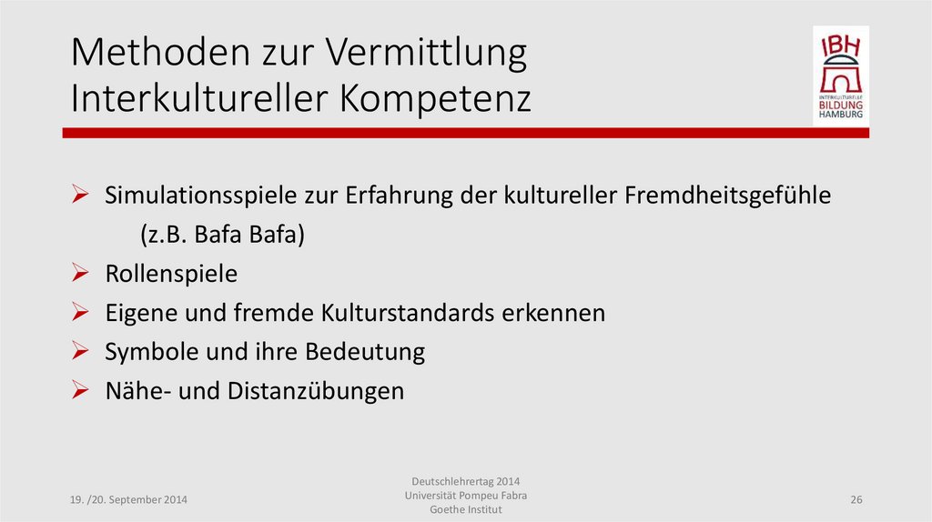 Methoden zur VermittlungInterkultureller Kompetenz