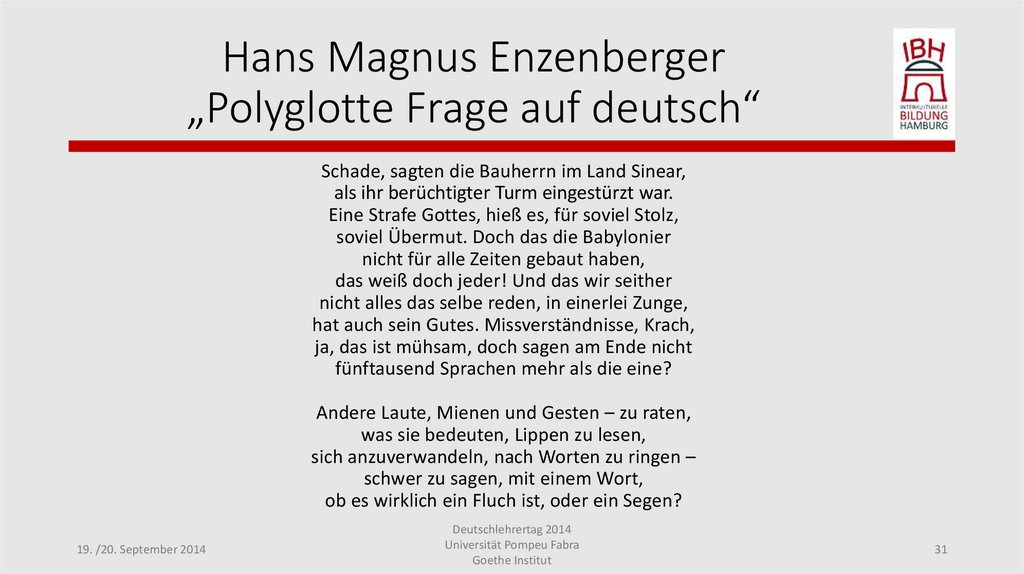 Hans Magnus Enzenberger„Polyglotte Frage auf deutsch“