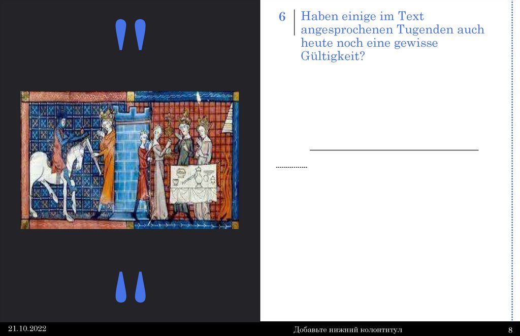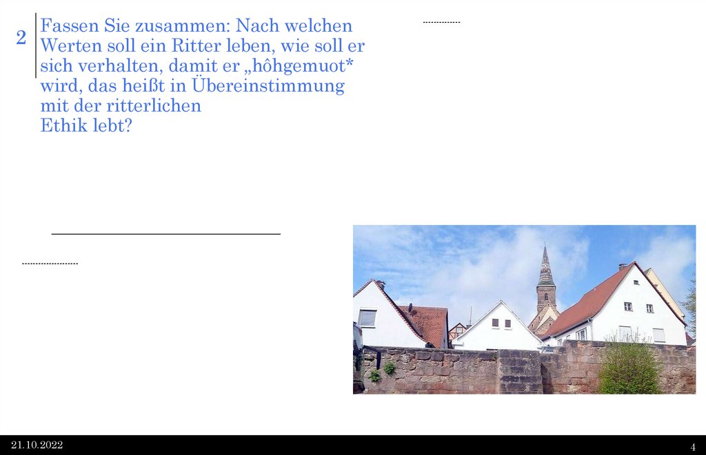 Fassen Sie zusammen: Nach welchen2 Werten soll ein Ritter leben, wie soll er