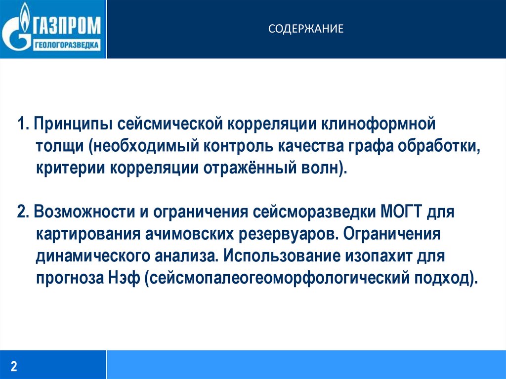 СОДЕРЖАНИЕ1. Принципы сейсмической корреляции клиноформной