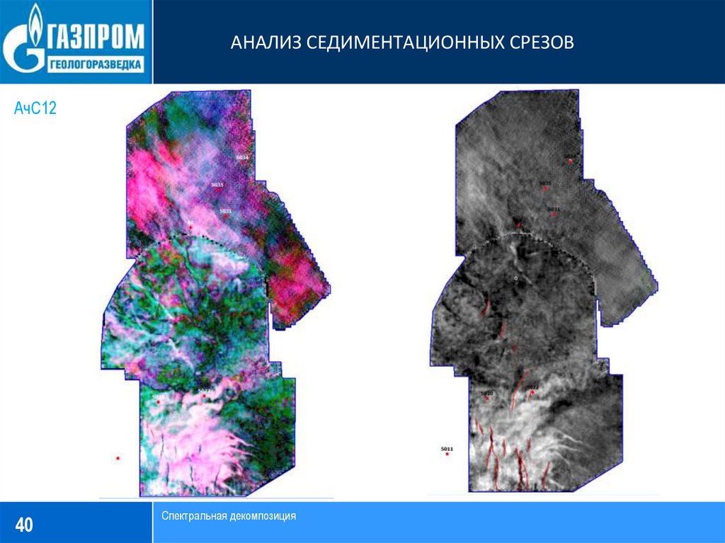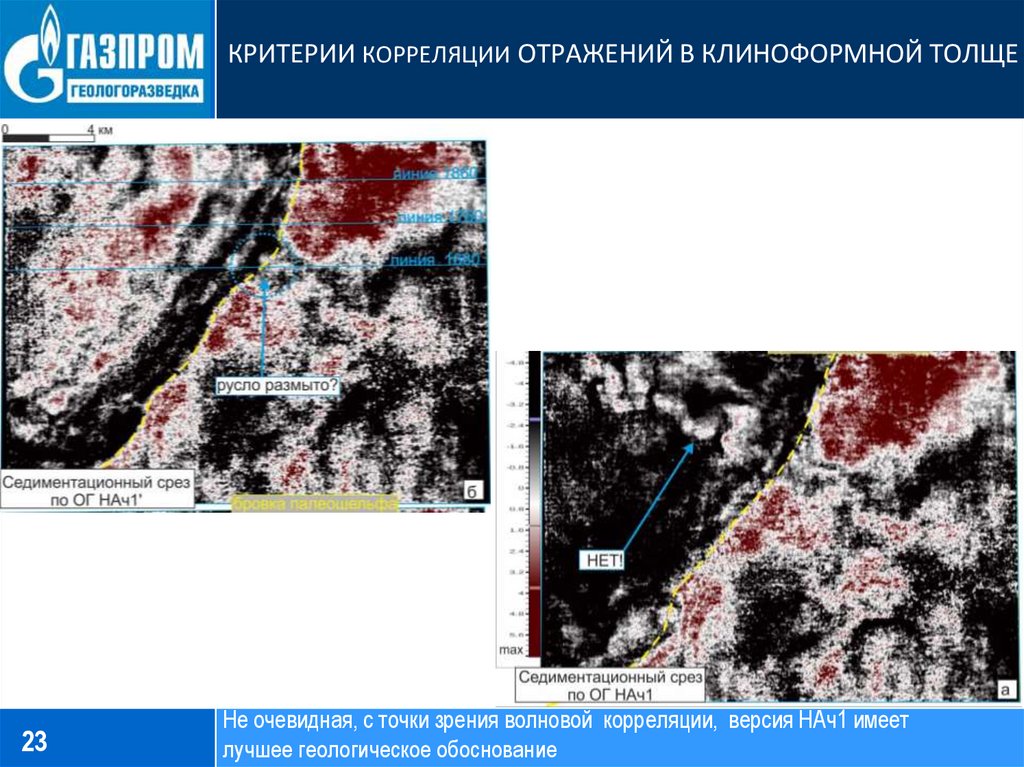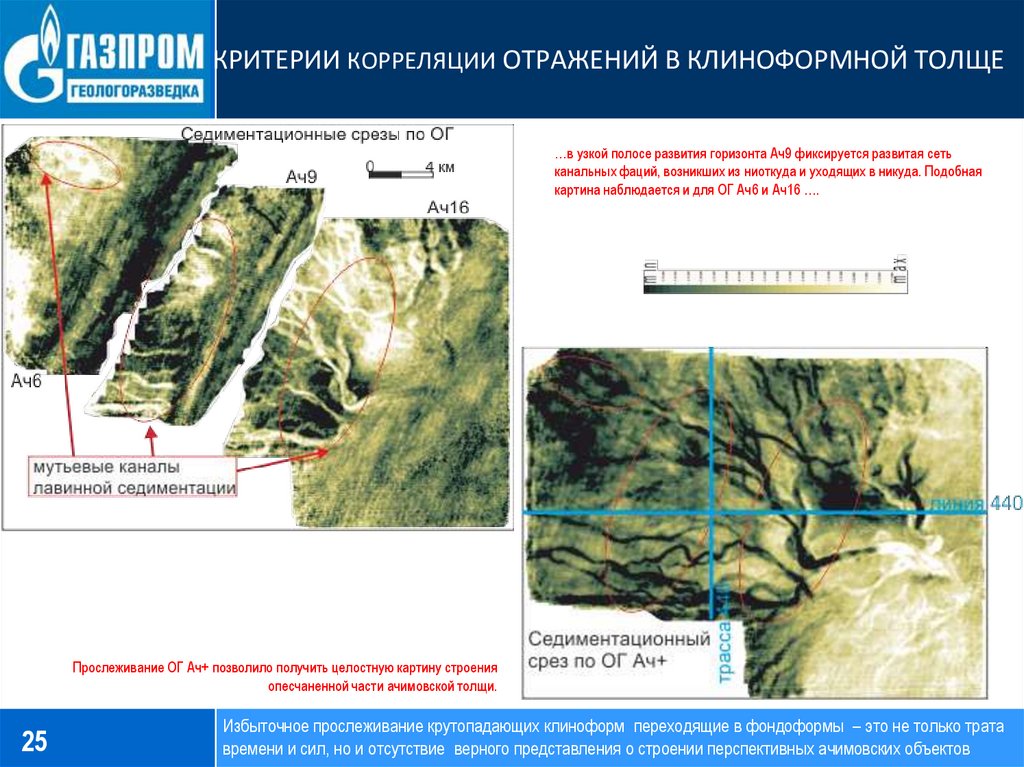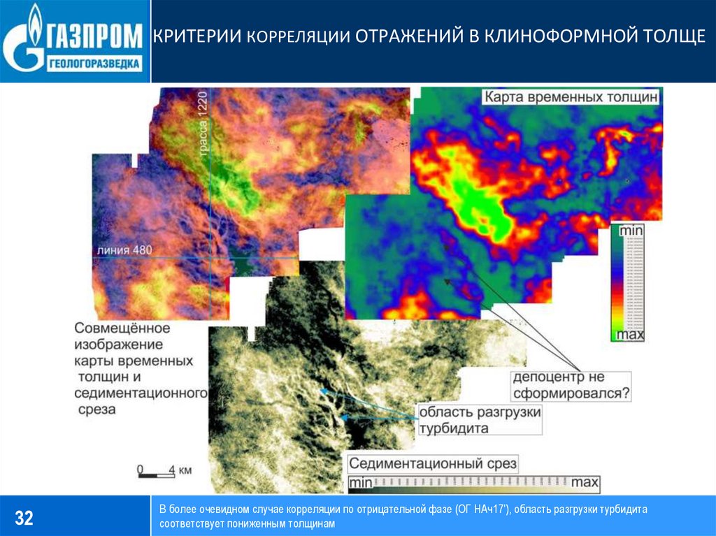 канальных фаций в клиноформной толще на седиментационных срезах.