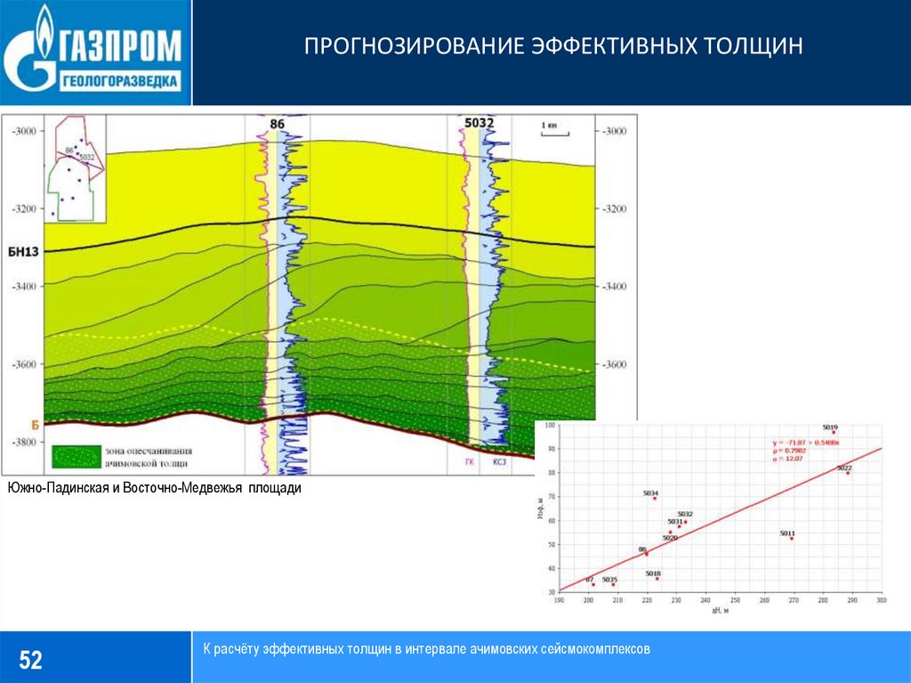 ПРОГНОЗИРОВАНИЕ ЭФФЕКТИВНЫХ ТОЛЩИНЮжно-Падинская и Восточно-Медвежья площади
