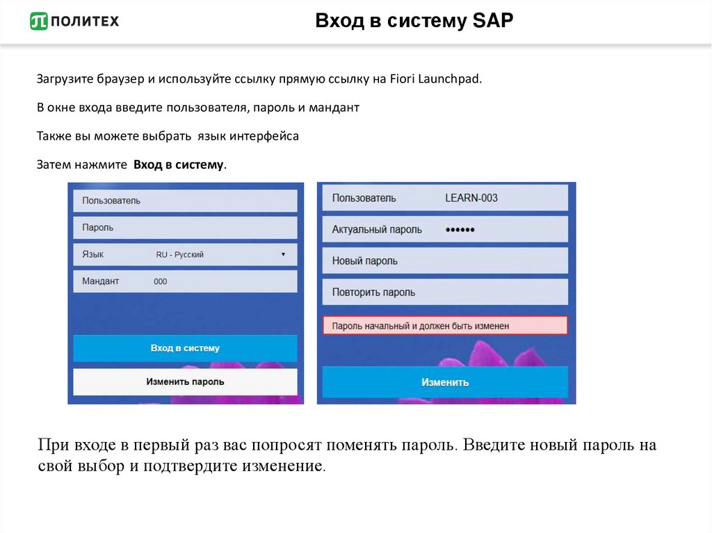 Вход в систему SAPЗагрузите браузер и используйте ссылку прямую ссылку на Fiori Launchpad.