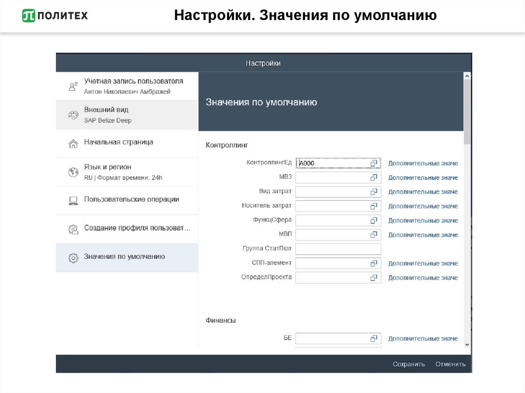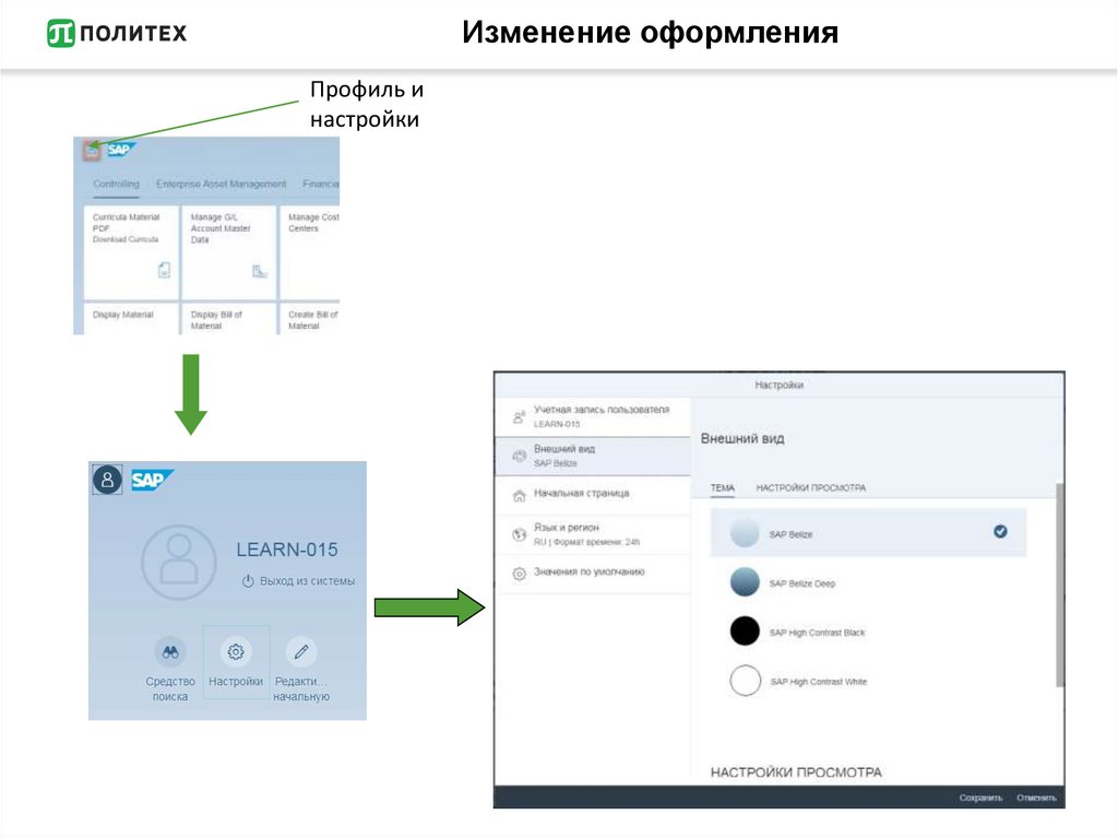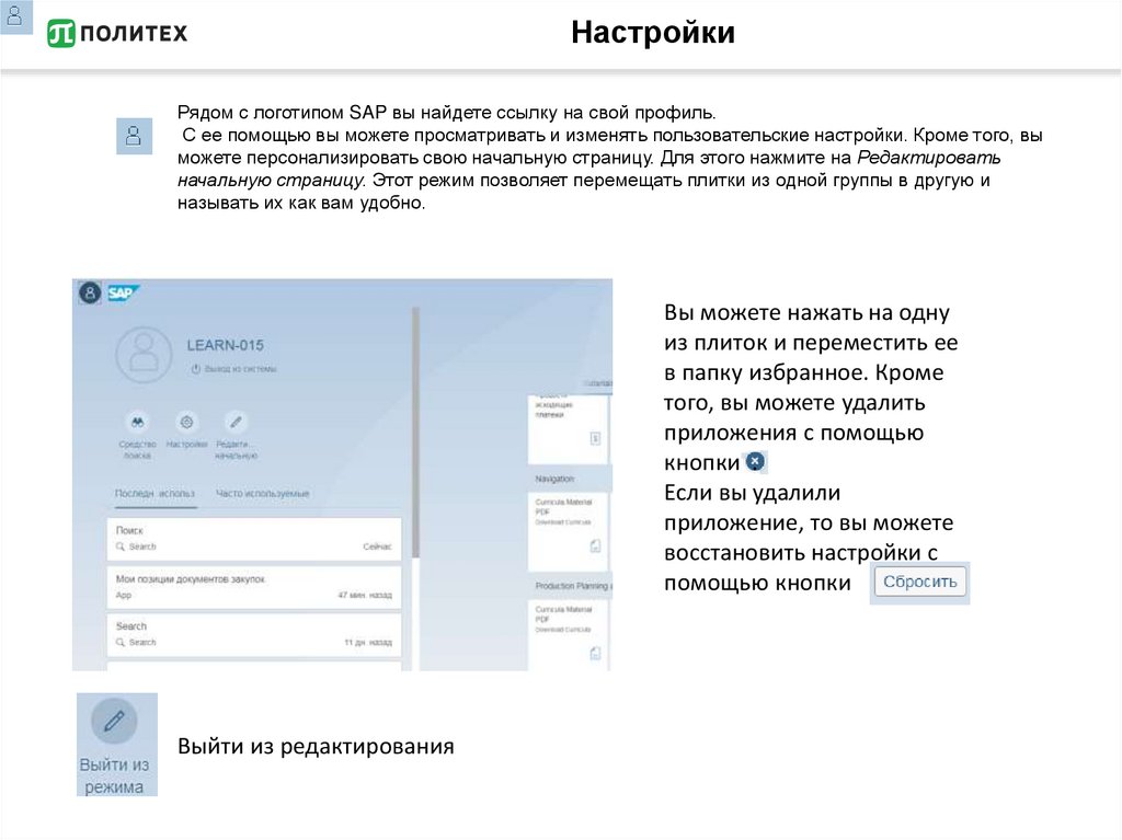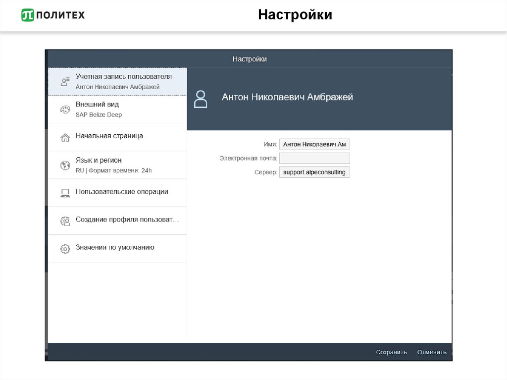 НастройкиРядом с логотипом SAP вы найдете ссылку на свой профиль.