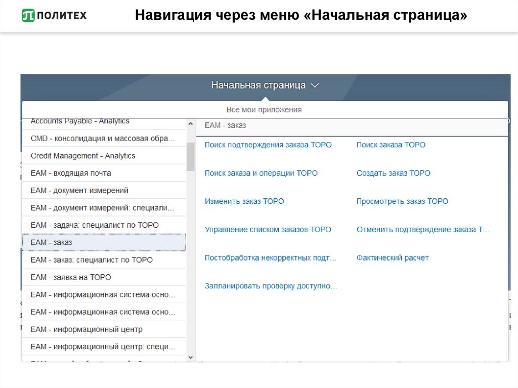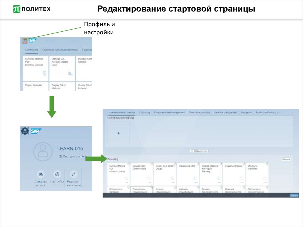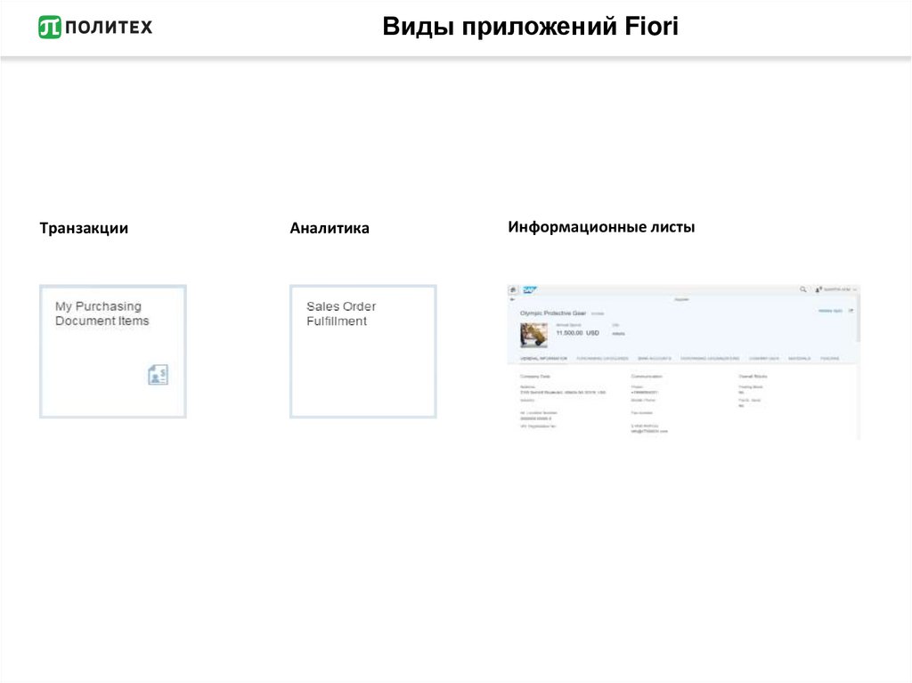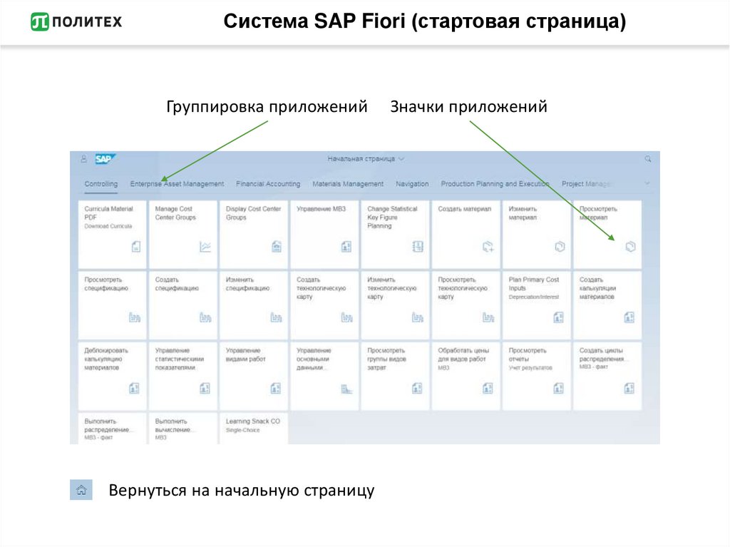 Система SAP Fiori (стартовая страница)Группировка приложений