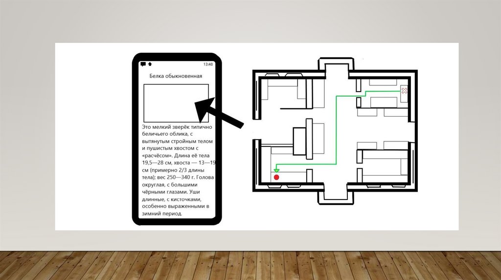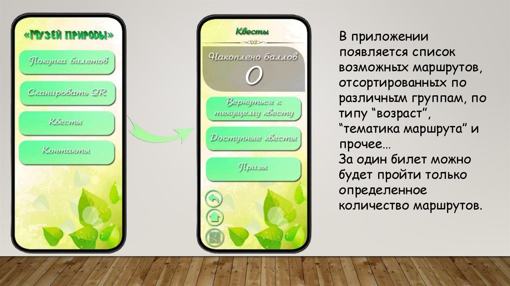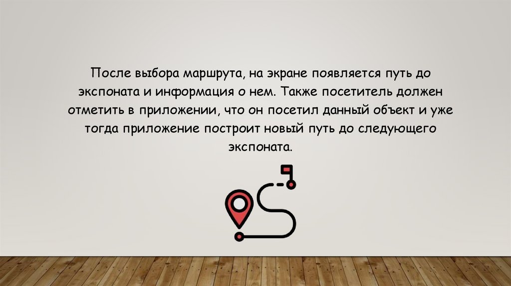 После выбора маршрута, на экране появляется путь доэкспоната и информация о нем. Также посетитель должен