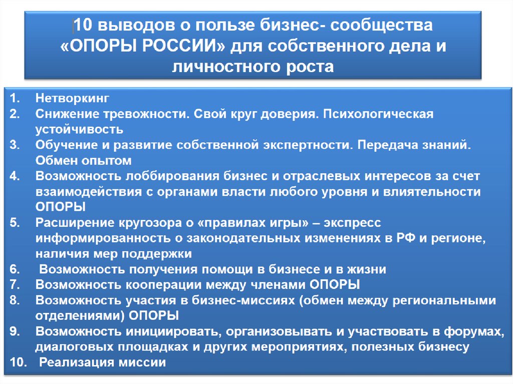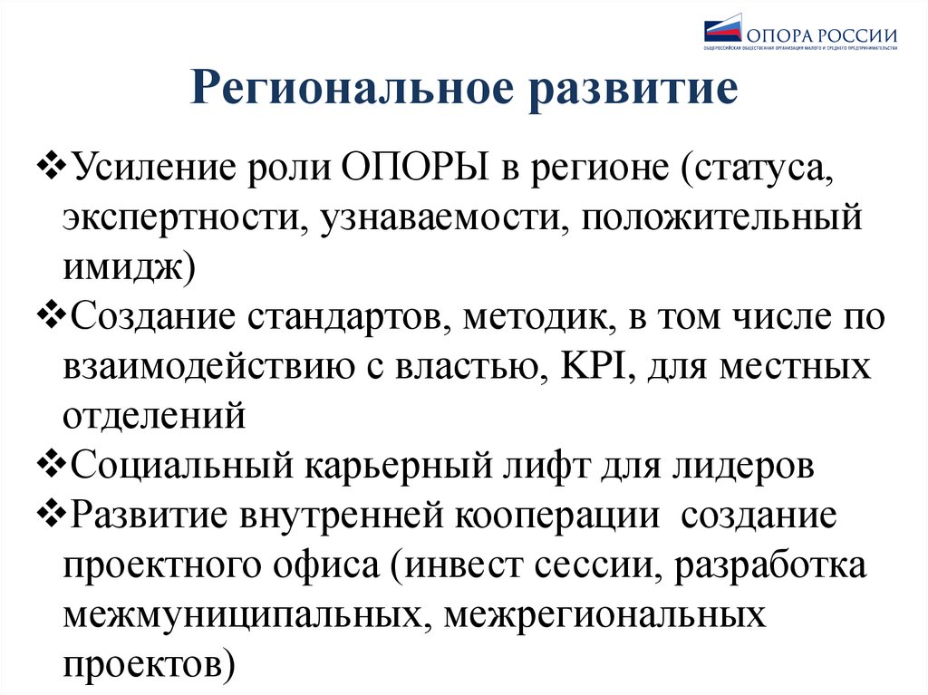 Региональное развитиеУсиление роли ОПОРЫ в регионе (статуса,