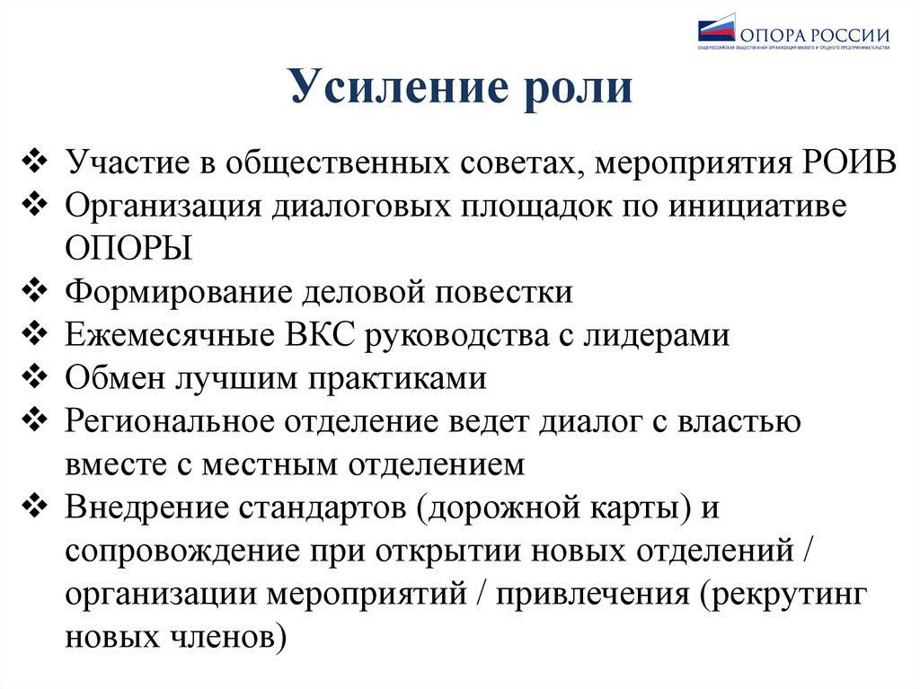 Усиление ролиУчастие в общественных советах, мероприятия РОИВ