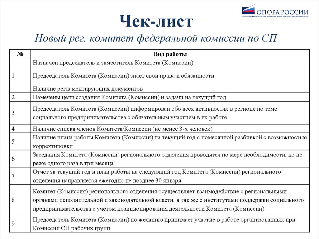 Чек-листНовый рег. комитет федеральной комиссии по СП