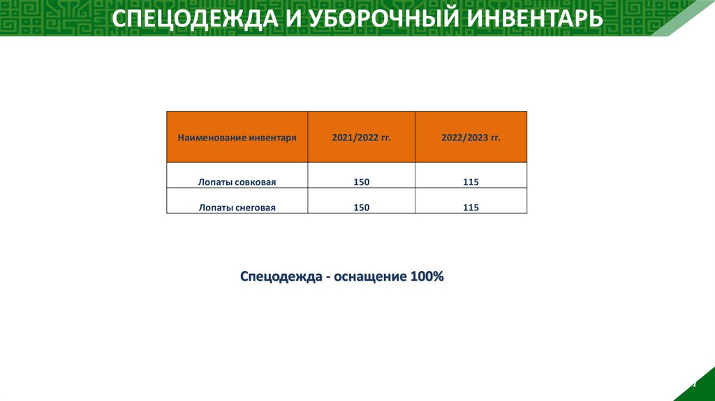 СПЕЦОДЕЖДА И УБОРОЧНЫЙ ИНВЕНТАРЬНаименование инвентаря