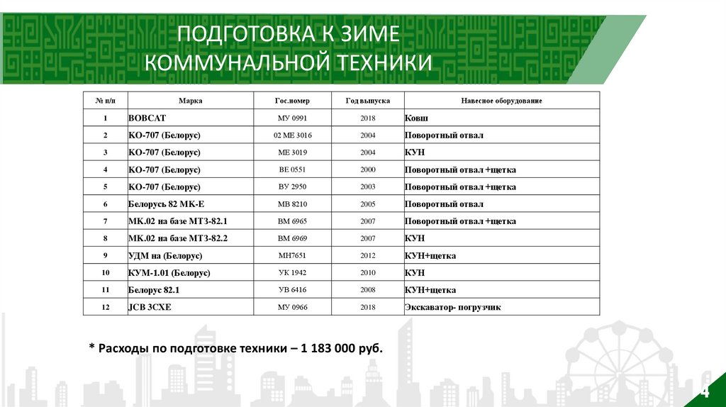* Расходы по подготовке техники – 1 183 000 руб.