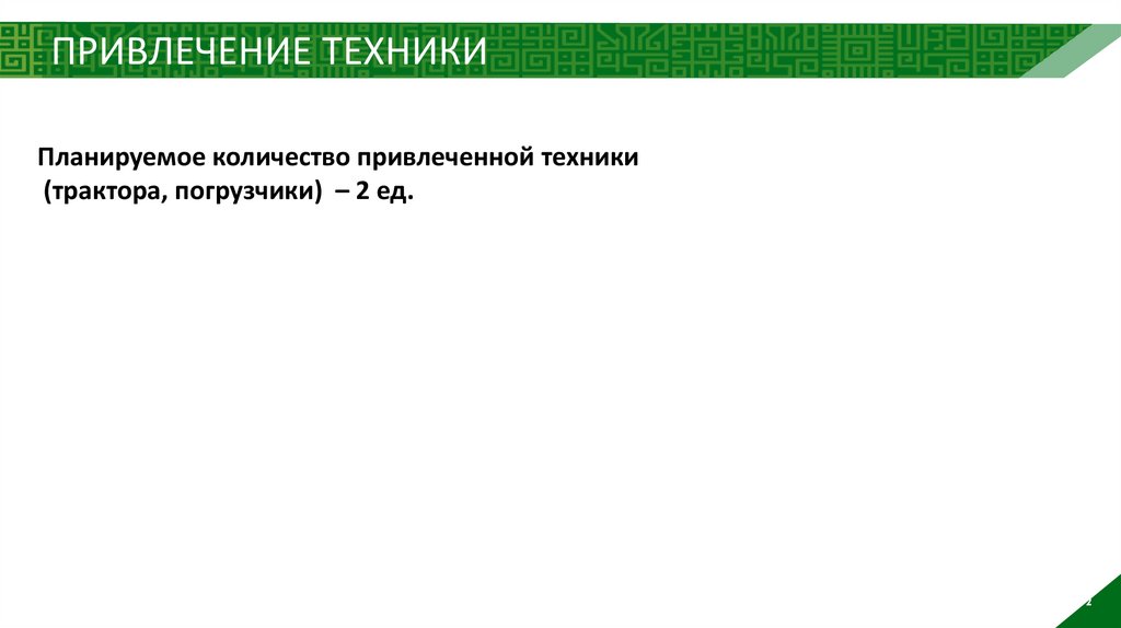 ПРИВЛЕЧЕНИЕ ТЕХНИКИПланируемое количество привлеченной техники