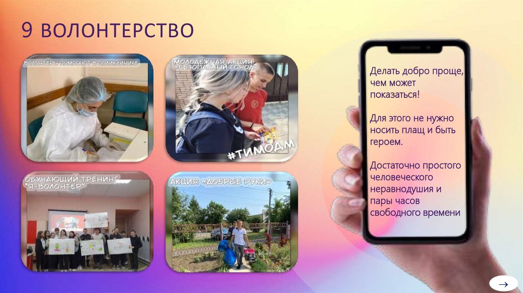 9 ВОЛОНТЕРСТВОДля того, чтобы стать волонтером необходимо отсканировать ссылки,