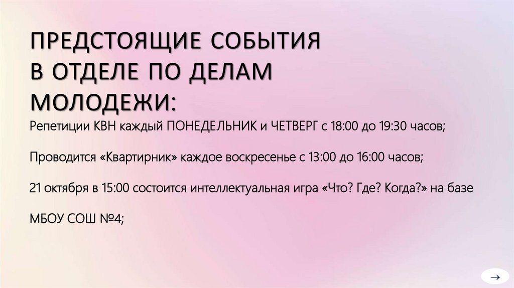 ПРЕДСТОЯЩИЕ СОБЫТИЯВ ОТДЕЛЕ ПО ДЕЛАМ