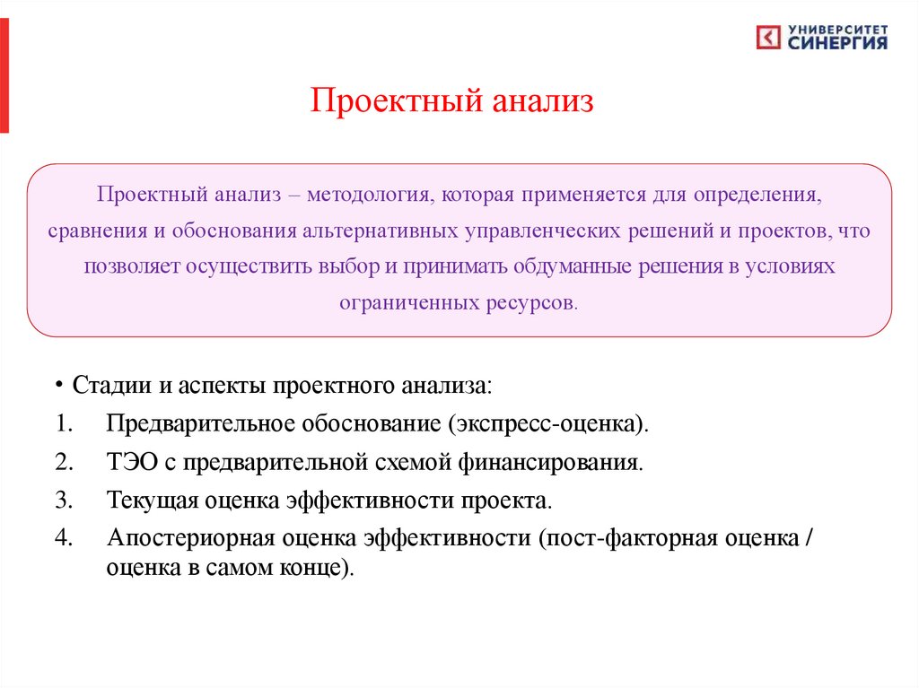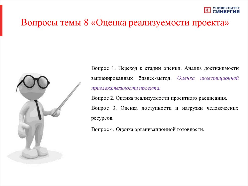 Управление проектами. Тема 8. Оценка реализуемости проекта