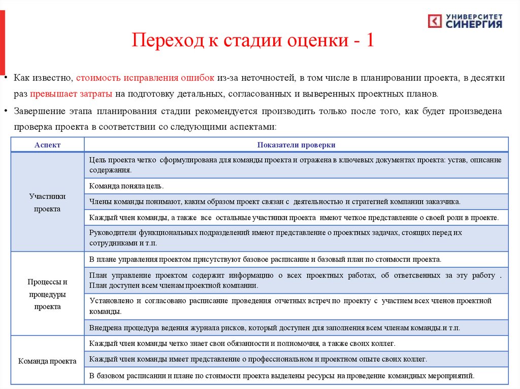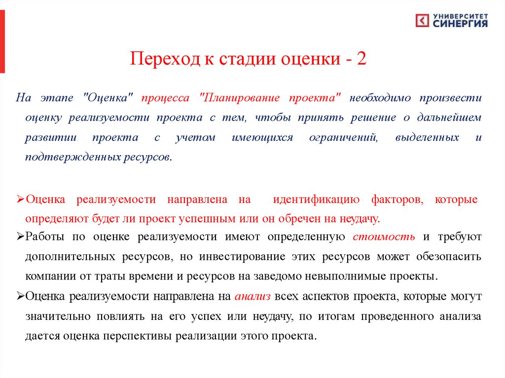 Переход к стадии оценки - 2На этапе "Оценка" процесса "Планирование проекта" необходимо произвести