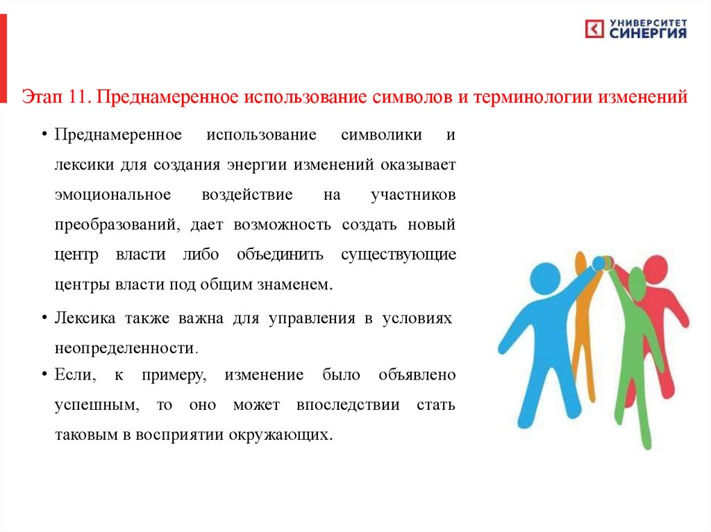 Этап 11. Преднамеренное использование символов и терминологии изменений• Преднамеренное